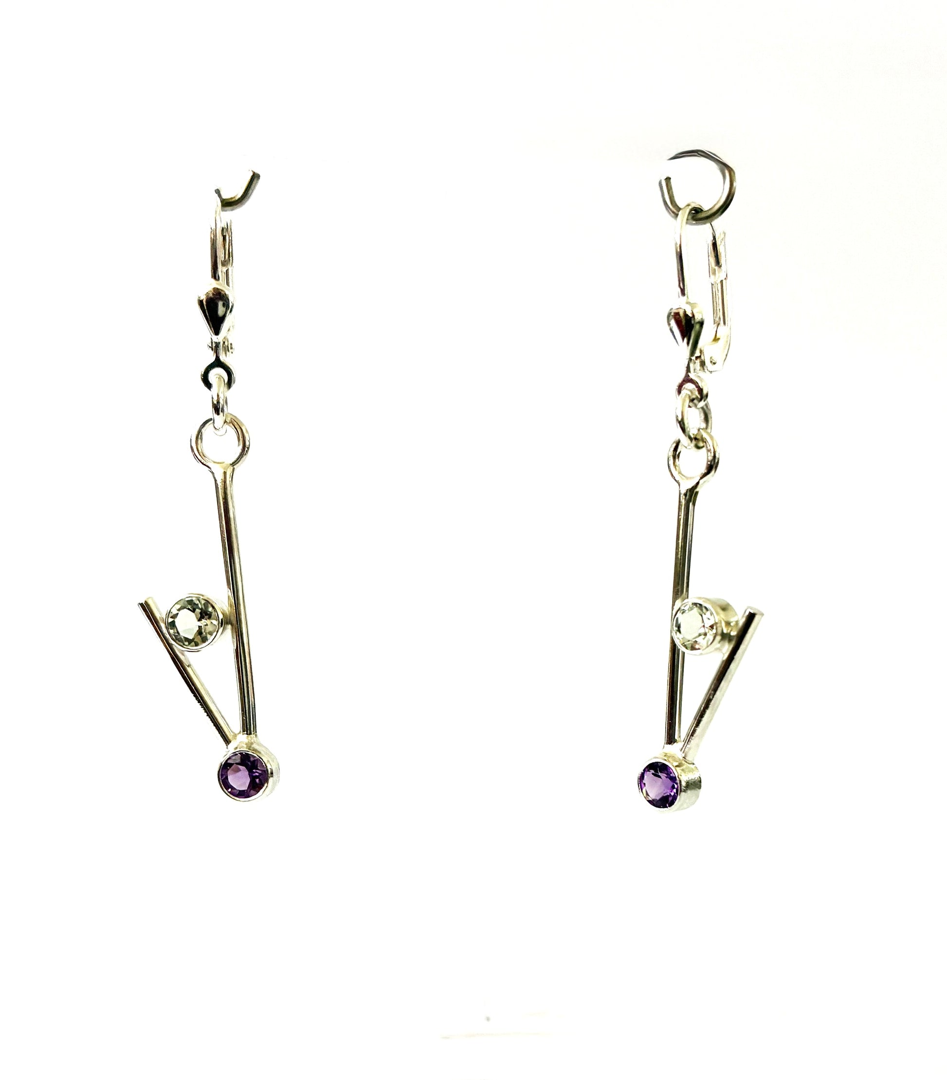 Silver earrings set with 4mm mint Quartz and 4mm Amethyst.