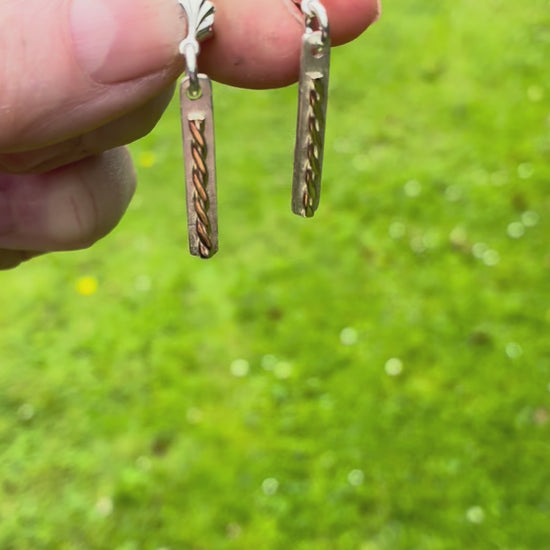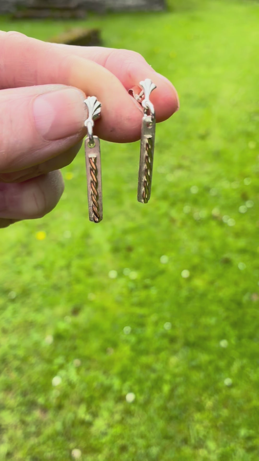 Silver stud earrings worked with 18ct yellow gold rope twist detail. Earring size is 24mm X 4mm. E.48.